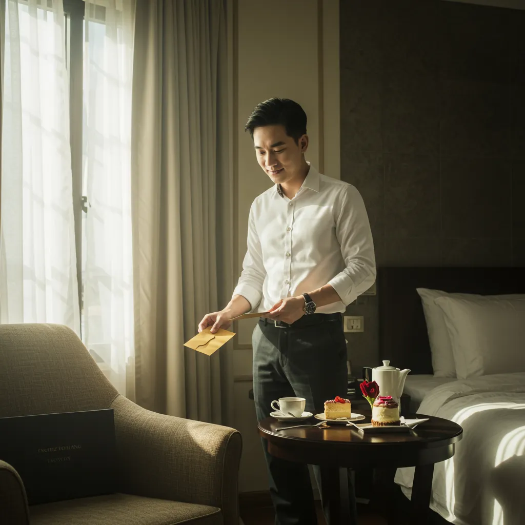 “Phòng của anh đã sẵn sàng rồi ạ. Mời anh theo em.” Mai Lan nhẹ nhàng dẫn đường. Hành lang dẫn vào phòng là một đường cong mềm mại, điểm xuyết những bức tranh thủy mặc và chậu cây cảnh xanh tươi. Mỗi bước chân của Mai Lan đều uyển chuyển, nhẹ nhàng như mây. Hùng, với con mắt của một chuyên gia đánh giá, ghi nhận mọi chi tiết: sự sạch sẽ đến từng kẽ gạch, mùi hương được kiểm soát hoàn hảo, không một vết bụi nào trên các vật dụng trang trí. Đây không chỉ là một dịch vụ, đây là một nghệ thuật.