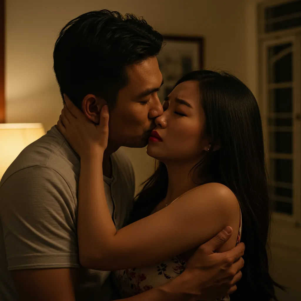 Mai Ly khẽ run rẩy trước sự dịu dàng của anh. Cô nhắm mắt, cảm nhận hơi thở ấm nóng của Kiệt phả vào mặt. Từ trước đến nay, những nụ hôn, những cái chạm của những người đàn ông khác đều mang tính chất chiếm hữu, thô bạo. Nhưng Kiệt thì khác. Anh chạm vào cô như chạm vào một báu vật dễ vỡ, đầy trân trọng và dịu dàng.
